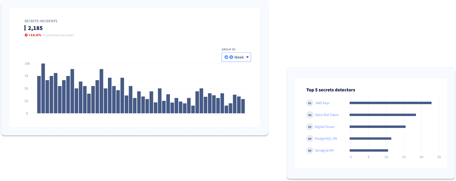 Continue your discovery phase, but this time, focus on the secrets. Explore secrets exposure trends and evolution over time and try identifying the types of secrets that leak the most and the services they give access to.