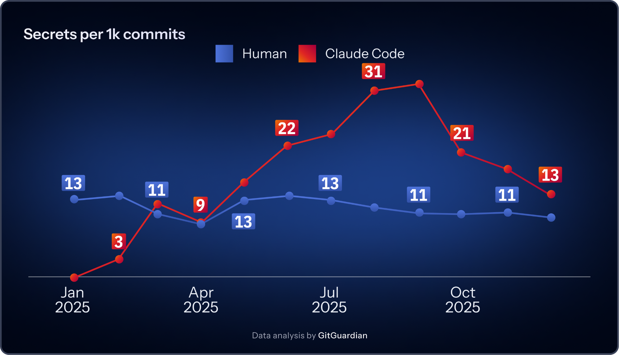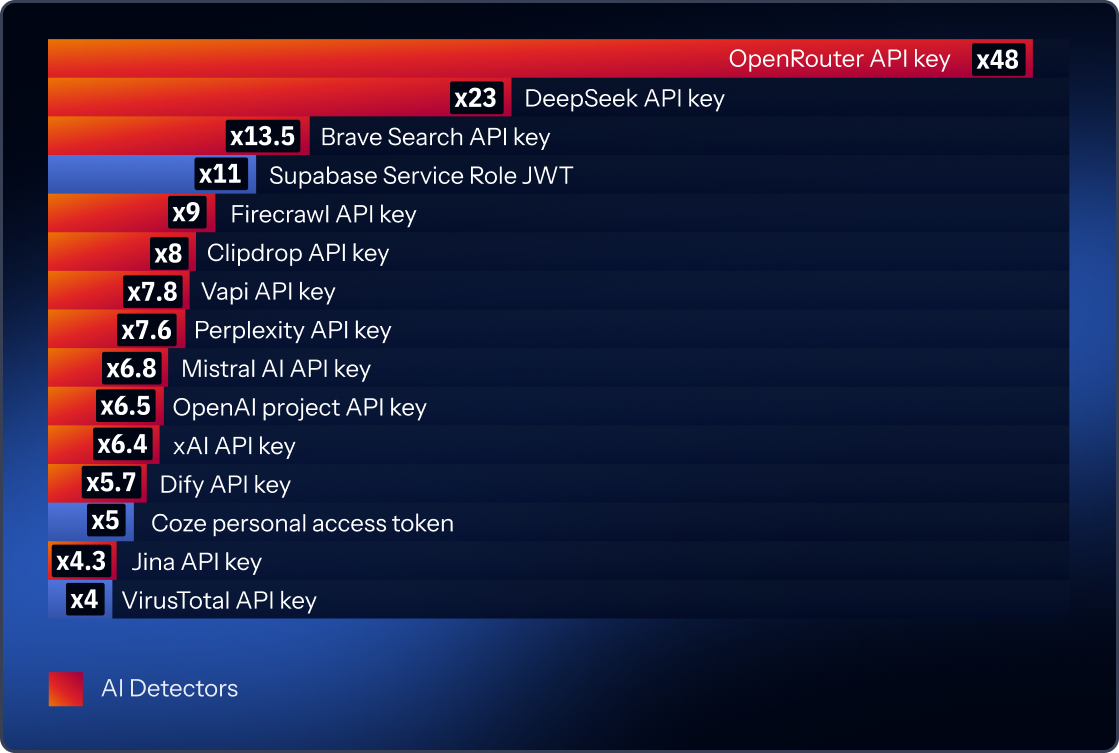 AI does not have to invent a new category of security mistakes to change the risk picture. It only has to increase the number of services, tools, workflows, and machine identities required to ship even ordinary software. More moving parts mean more keys. More keys mean more ways to leak them. The mechanics are familiar. The pace is new.Let's take a deeper look at what we found in the research across 2025.