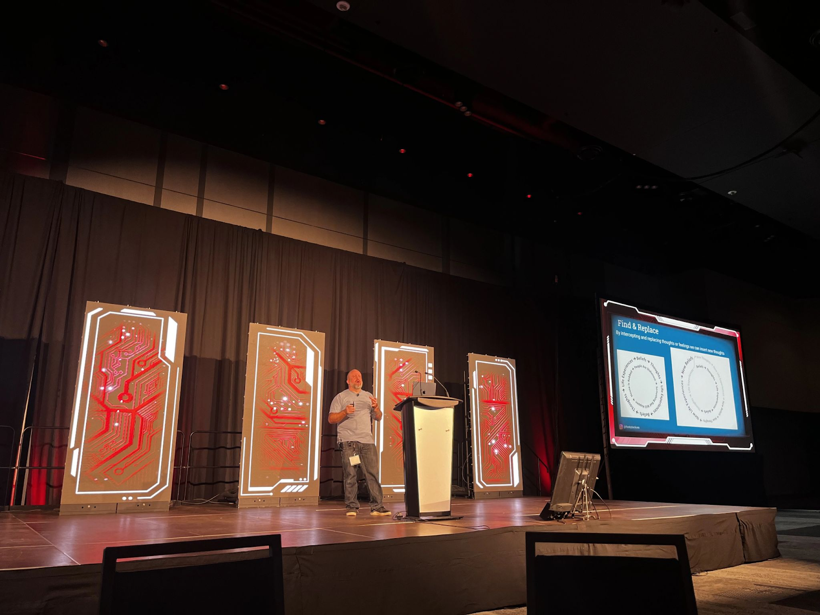 Throughout his talk, he explained how we need to run tests and implement observability in our personal lives. Mindfulness is how we accomplish this, allowing ourselves to pause and consider how we react as a first step to improving our situation. He stressed the importance of intentionality in our actions and the need to challenge our core programming. Much the same way we need to re-evaluate the best approaches to cybersecurity, we need to be mindful of the approach we take for the rest of our lives. By reevaluating how we got to believe what we believe, we can counteract bad programming.