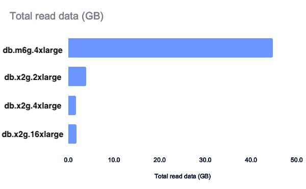 For x2g.4xlarge instances, the data is cached, so the read data doesn't account for the performance improvements.
