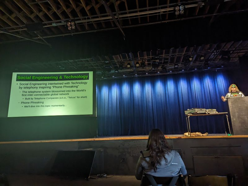 The always-colorful Matt Scheurer, ThreatReel podcaster and VP of Security at a major US organization, took attendees on a nostalgic journey through the history of telephony and its intersection with hacking in his session, "Lies, Telephony, and Hacking History." Bringing along a suitcase filled with various bits of tech from the last 60 years, he walked us through a history of telephone systems and how the subculture of phone phreaking evolved.