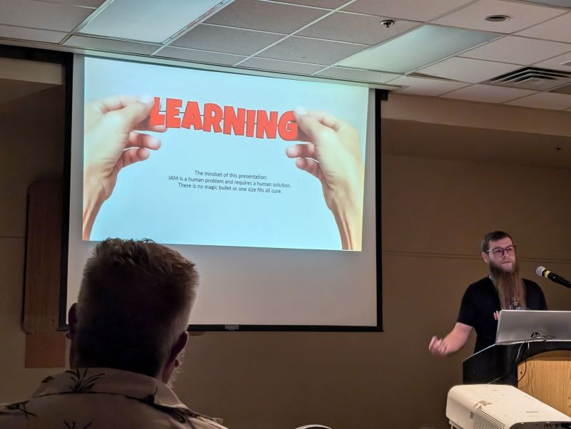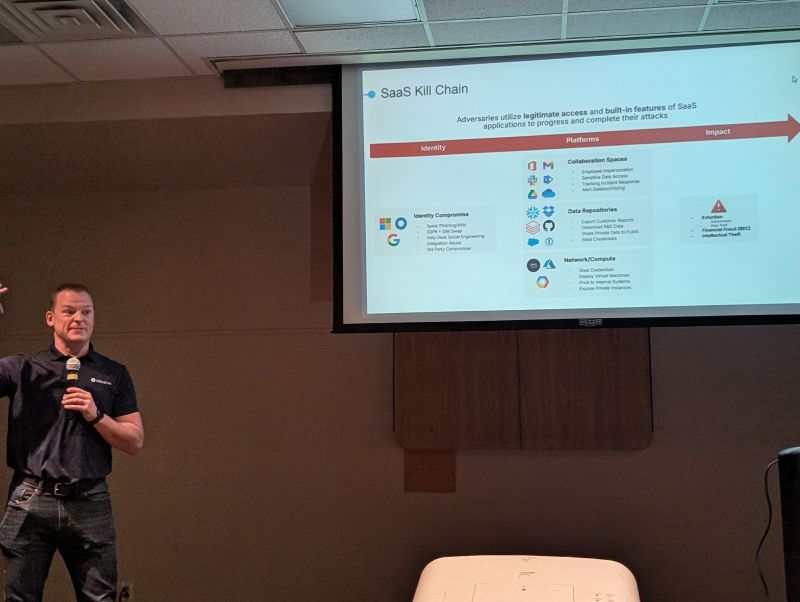 He walked us through the major steps common in all SaaS attacks: Initial Access, Persistence, Defense Evasion, Discovery, and finally, Impact. While most of his work was focused on Business Email Compromises, one of the most financially damaging attacks possible, according to the FBI, Ryan also talked us through some major breaches that involved password reset and even multifactor authentication resets, as we saw with MGM in 2023. Ryan directed us to his blog post for those who are interested in learning more about SaaS identity compromise.