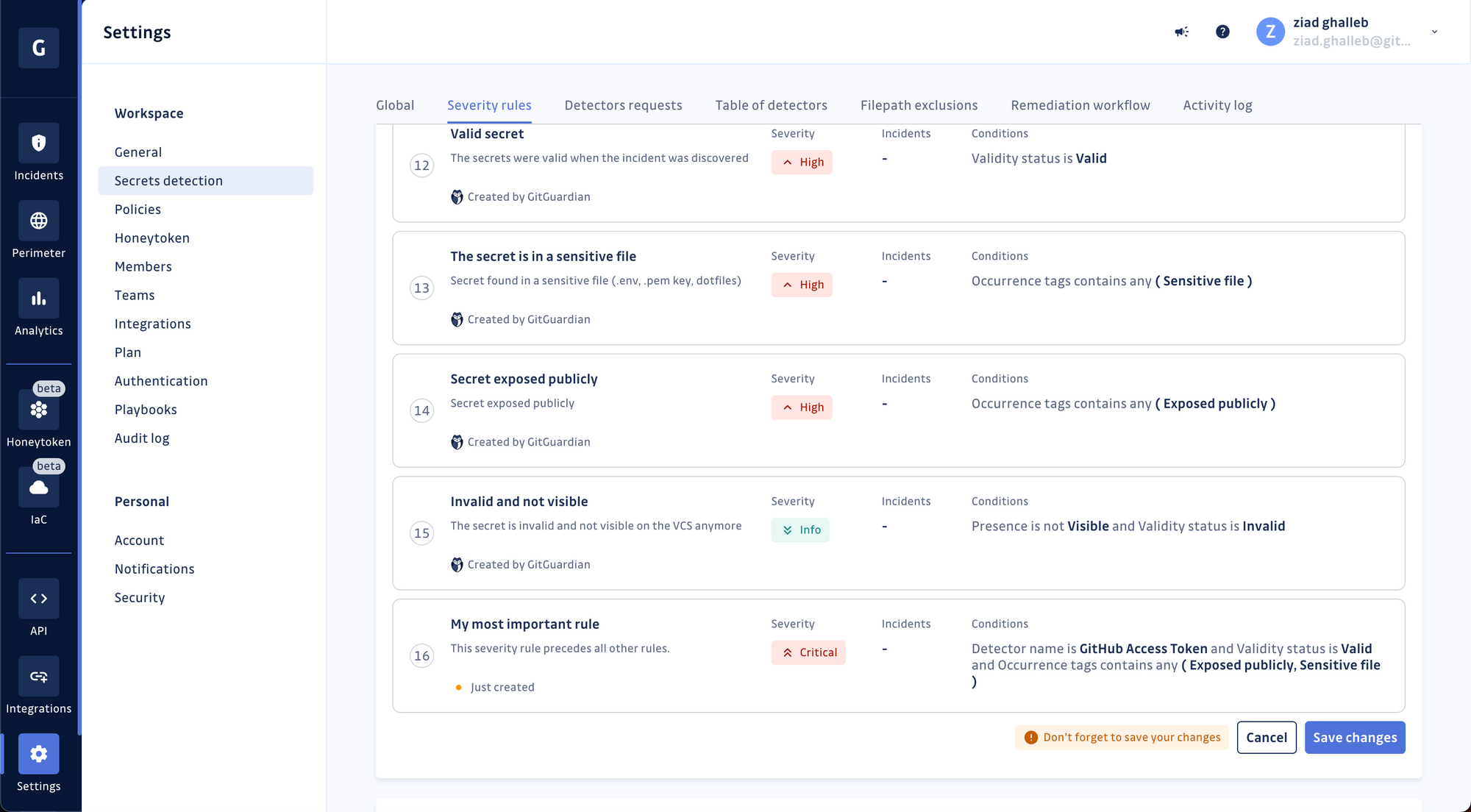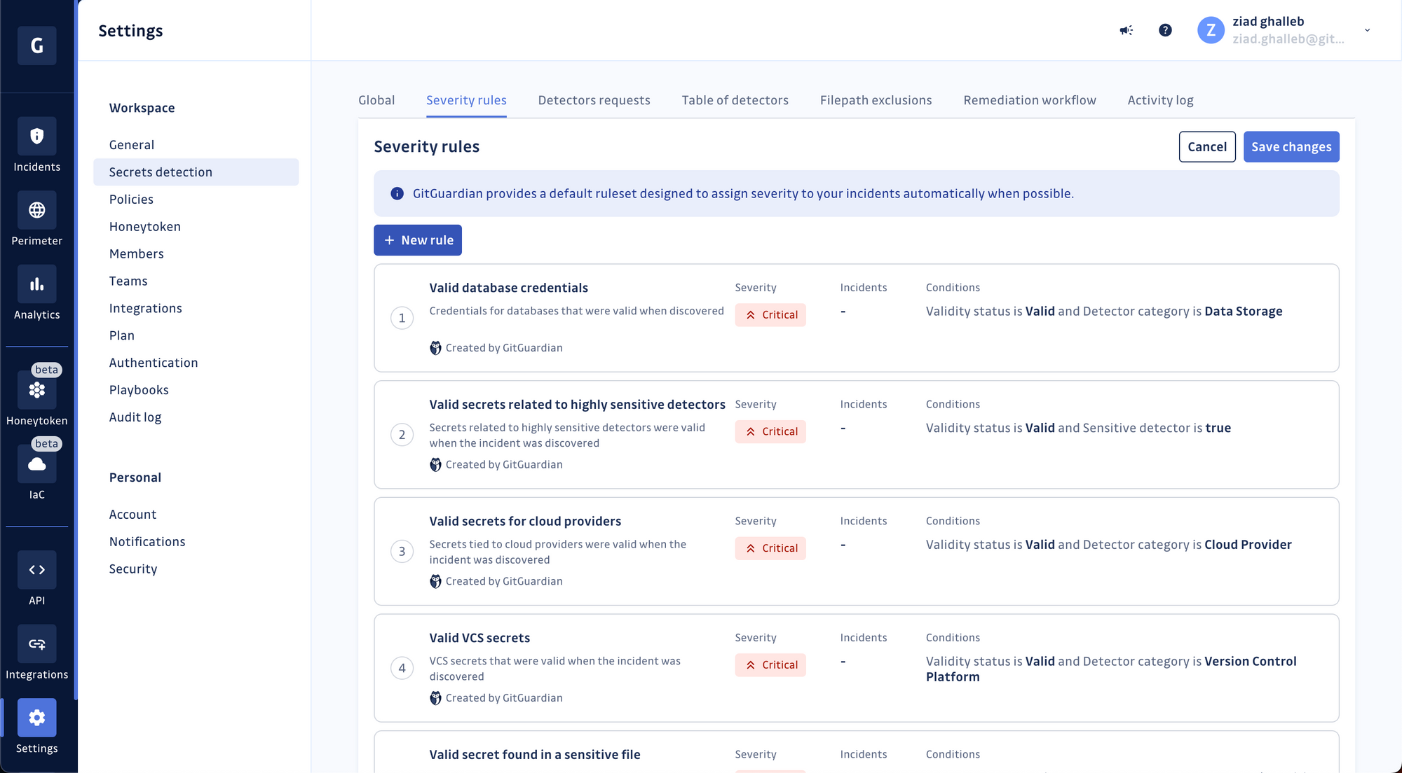 Today, we're taking it a step further with an enhanced version. Managers and owners of GitGuardian workspaces can now edit the default ruleset or create their own severity rules.