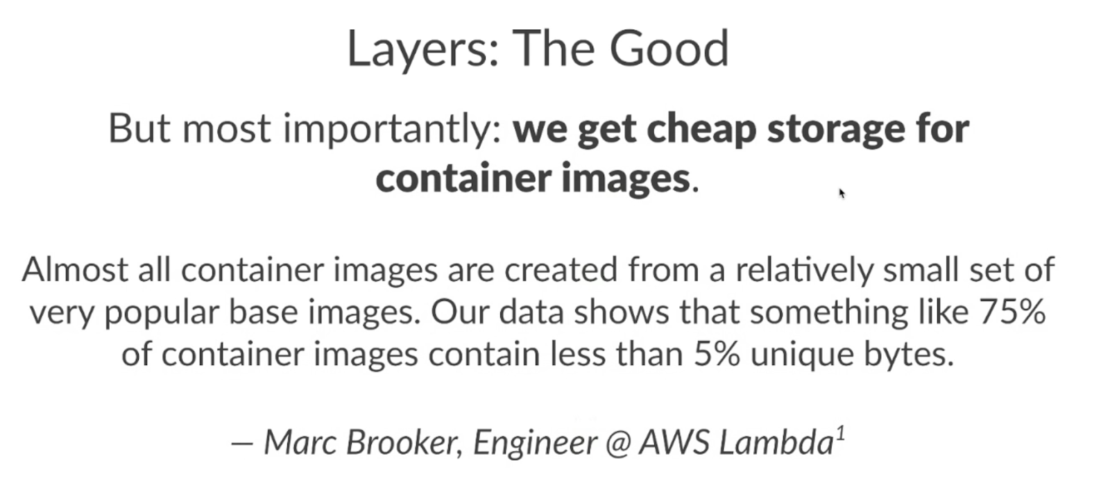 An AWS Lambda example illustrates this well—75% of container images share less than 5% unique bytes, thanks to layers.
