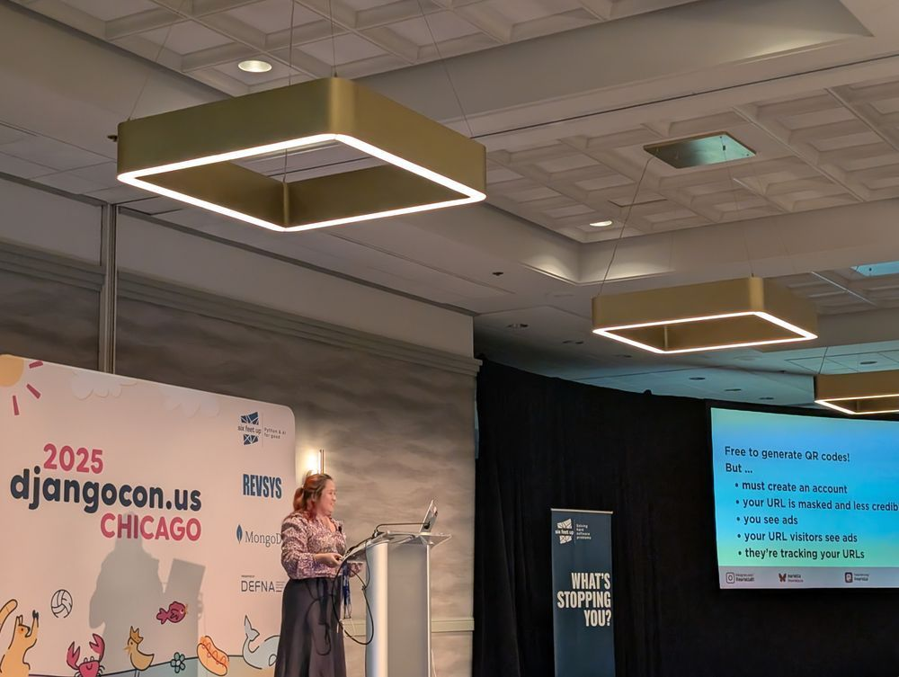 In her talk "Reverse engineering the QR code generator and URL forwarder service," Mariatta Wijaya, Senior Software Engineering Consultant, tackled a small but real problem: QR codes at events. She explained that too often, free QR services inject ads, redirect through shady URLs, or harvest data. For speakers and attendees, that erodes trust. Instead of accepting those tradeoffs, she built her own solution with Django.