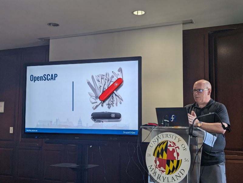 Ben introduced us to OpenSCAP, a collection of open-source tools for implementing and enforcing Security Content Automation Protocol (SCAP), a specification for expressing and manipulating security data in standardized ways. OpenSCAP tools can quickly help agencies find the right policies, tune them for their particular needs, and monitor how they are implemented and upheld.
