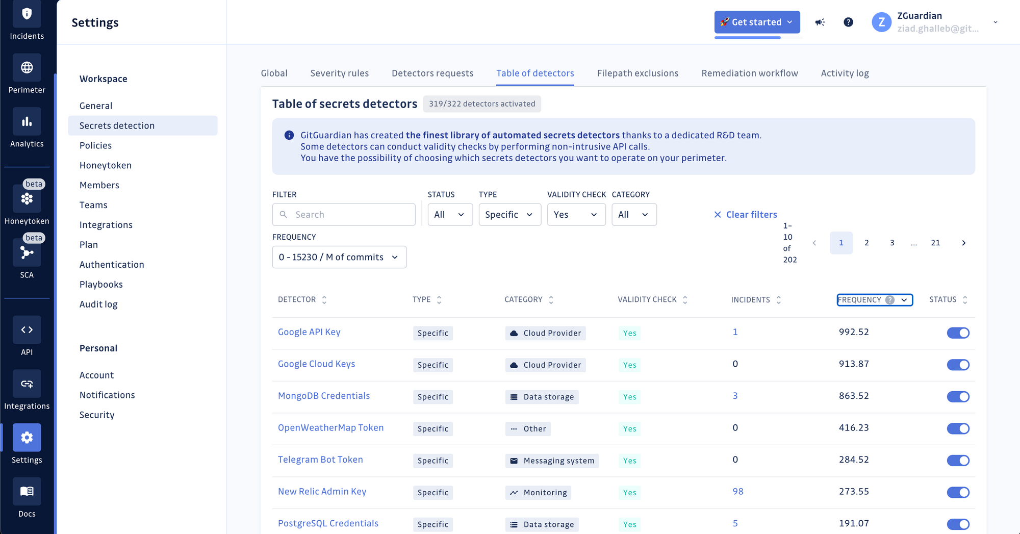 We’re also continuing our efforts to include secrets validity checks where possible to improve the precision of your findings and filter out the false positives before they even reach your incident dashboard. Out of our 310 specific secrets detectors (tied to a provider or a specific technology), 202 already have built-in validity checks!