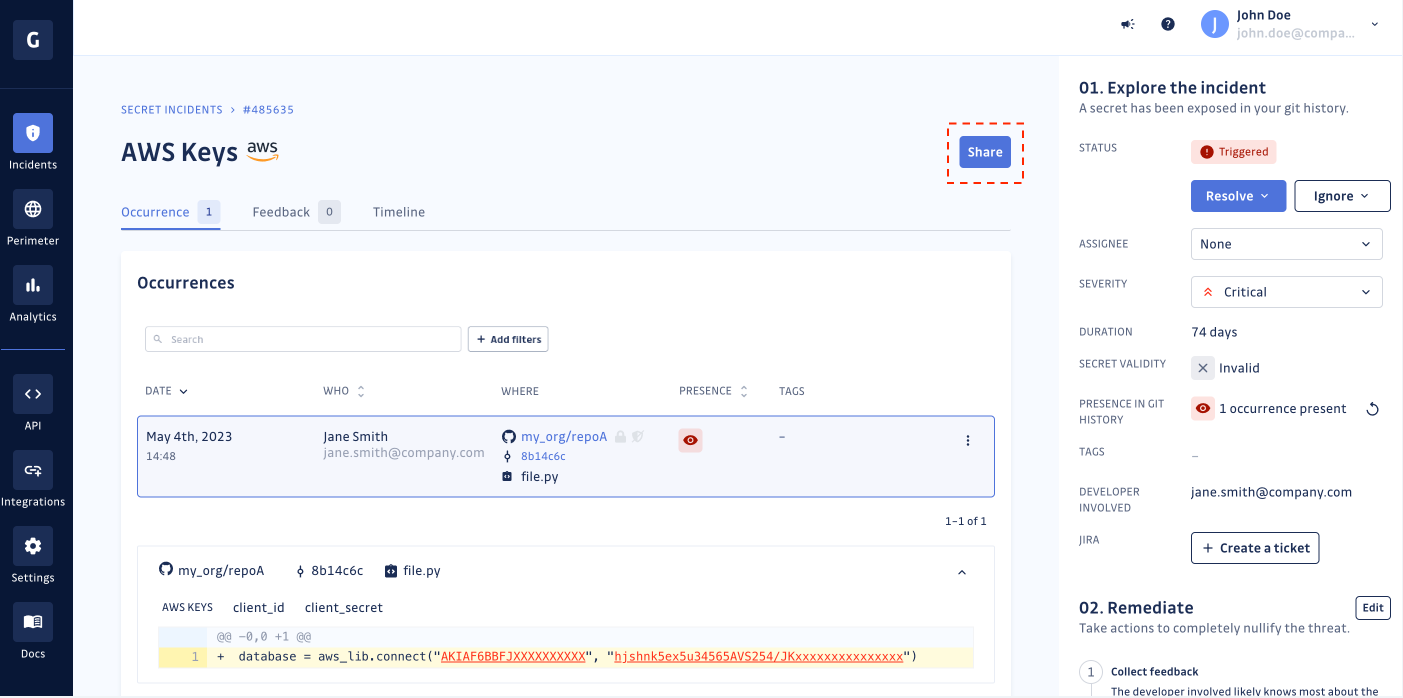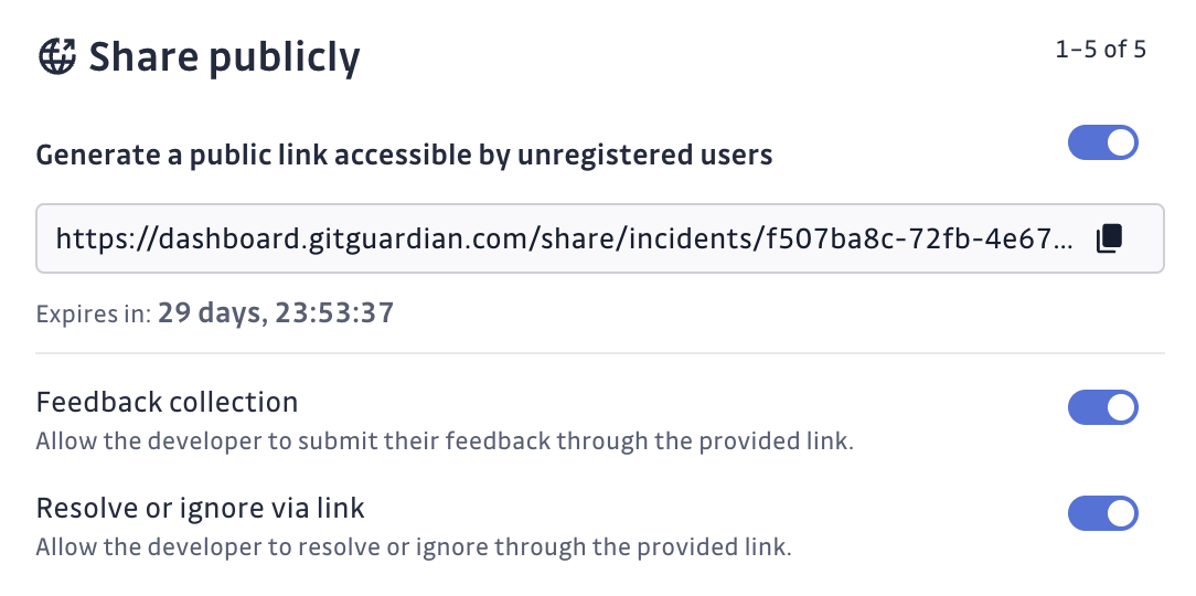 If that's the preferred solution, GitGuardian makes sharing an incident extremely efficient through our public sharing functionality.