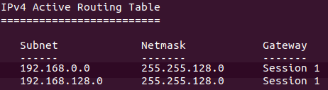The following screenshot shows the output of the Metasploit module “autoroute,” which allows to route the traffic to different networks by using the compromised host as a proxy or pivot point.