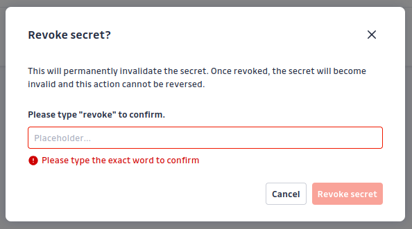 Revoking a secret may have dramatic side effects on your systems, applications, or workflows.