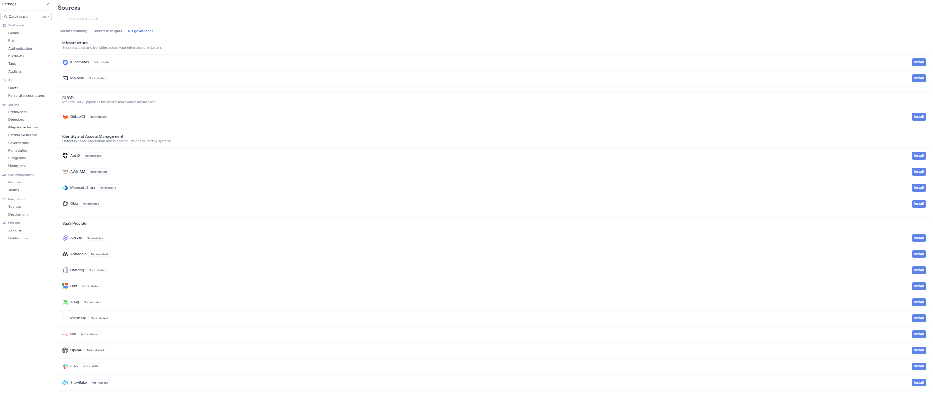 - Go to Settings > Integrations > Sources > NHI Governance