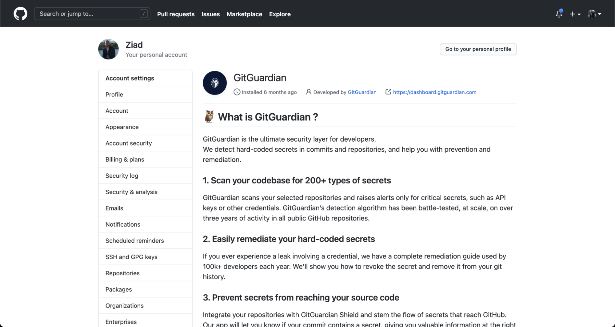 Sign up to GitGuardian with GitHubAbout GitHub Marketplace