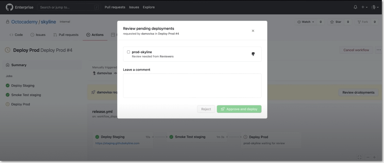 The new workflow visualizer gives the ability to target jobs to environments and you can now deploy to staging and then production in one workflow.