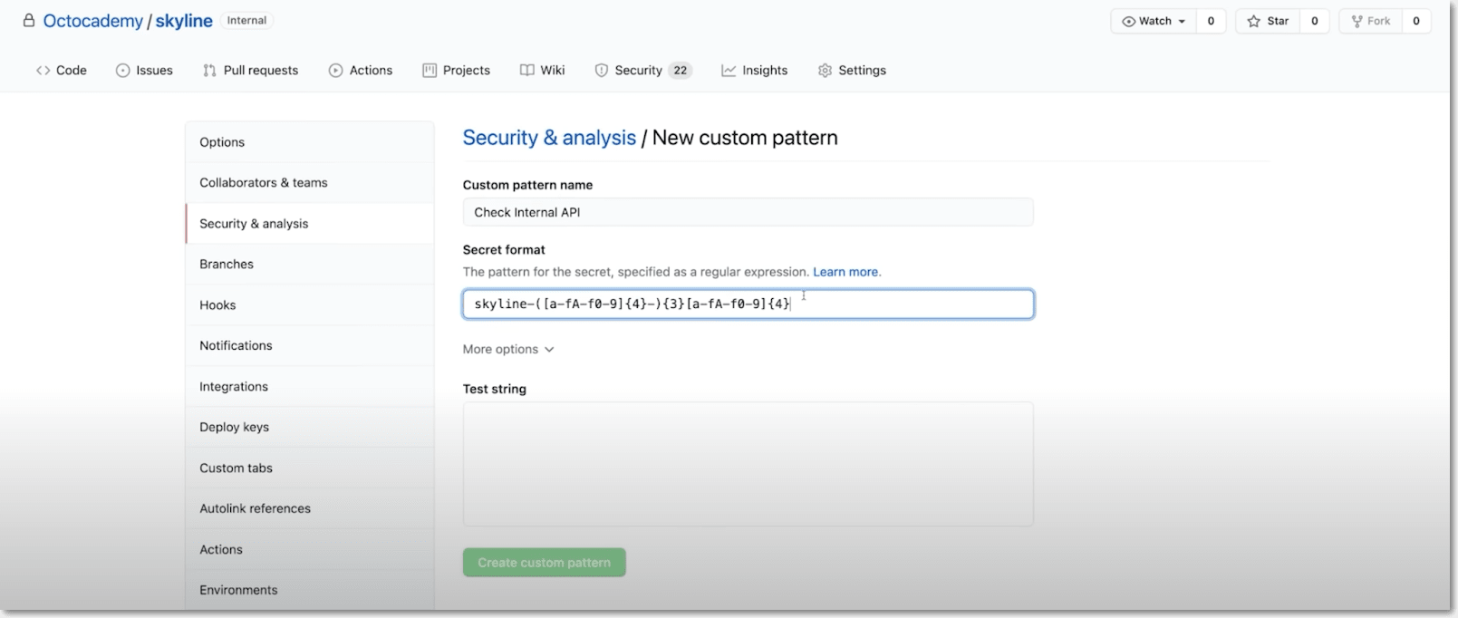 While currently the number of secrets discoverable with this tool is limited, they have added a new feature where you can create your own secret parameters using custom patterns. Even if this takes a lot of work and adds to the administrator, it is an important feature as the currently supported patterns are limited. It also doesn’t allow the ability to scan for generic secrets, limiting its capability to just pre and post-fixed secrets.