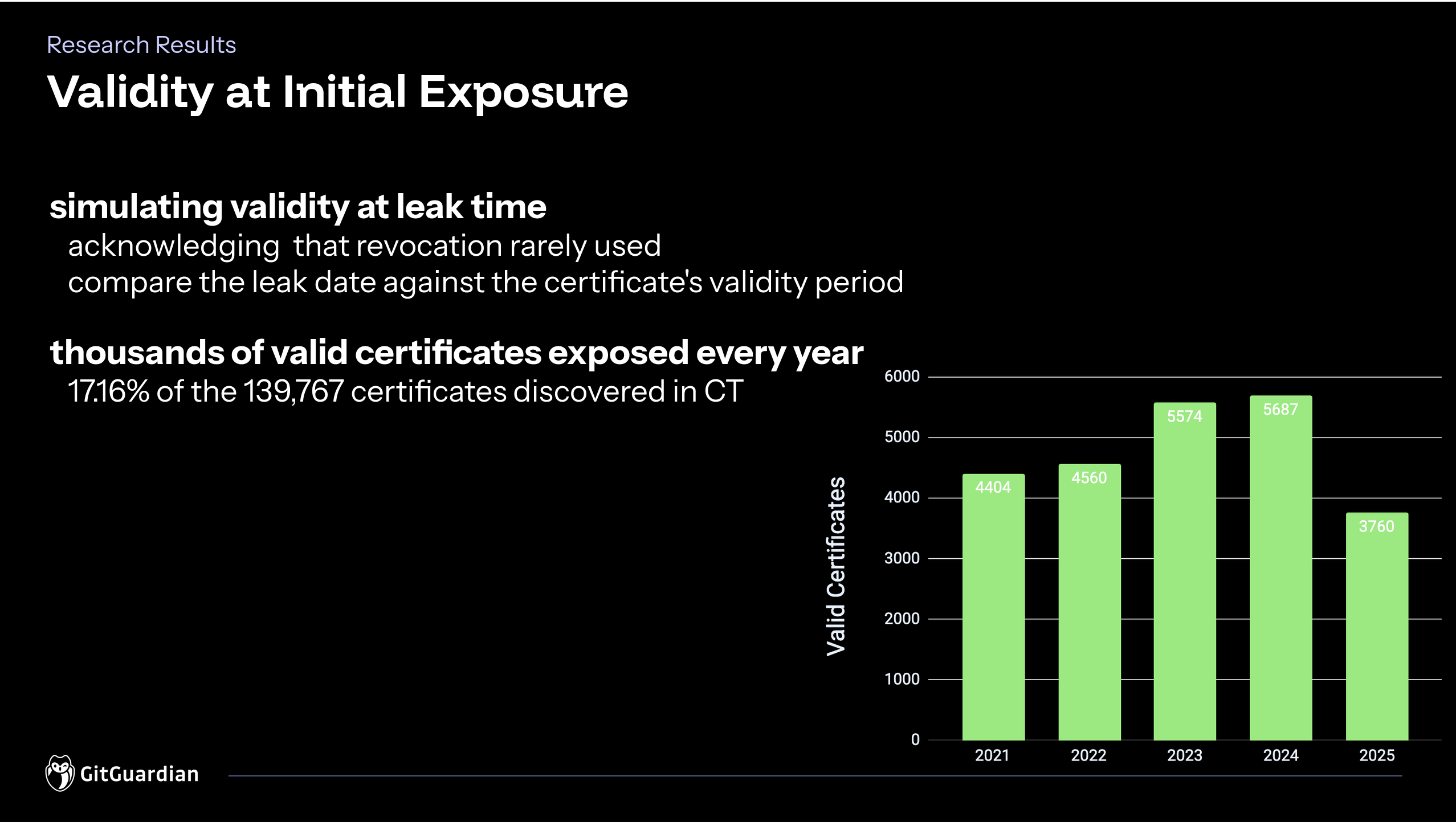 Beyond oolong drinking and the night markets, Taipei had more serious business to offer: GitGuardian was there to present our own research. We took the stage on Day 3 to share the findings behind "Private Key Leaks in the Wild", mapping 945,560 leaked private keys to 139,767 certificates through Certificate Transparency logs, evidence that key material escaping into the wild is not a niche incident but a systemic problem.