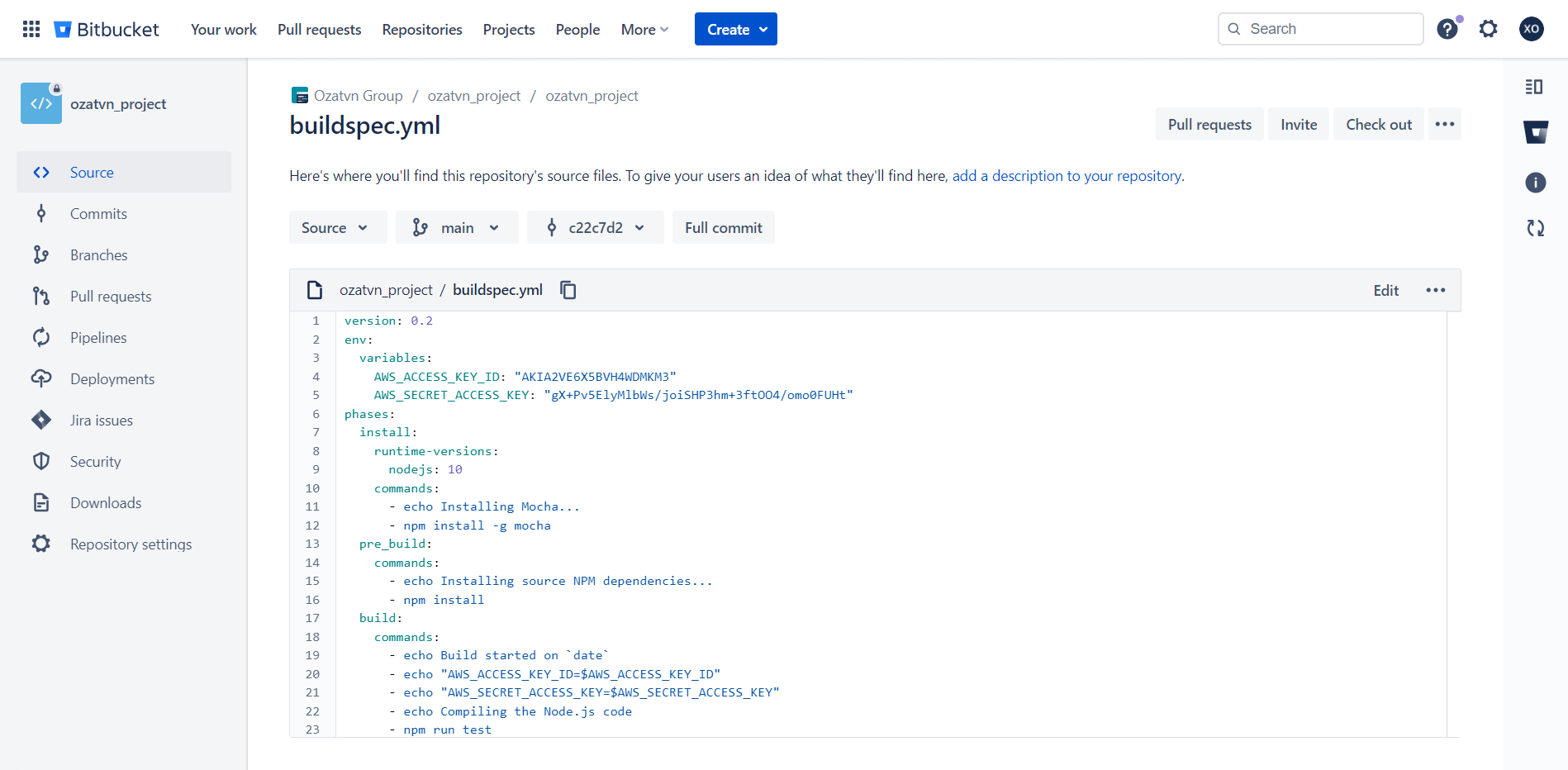 - Go to your buildspec.yml or another configuration file within your project repository.