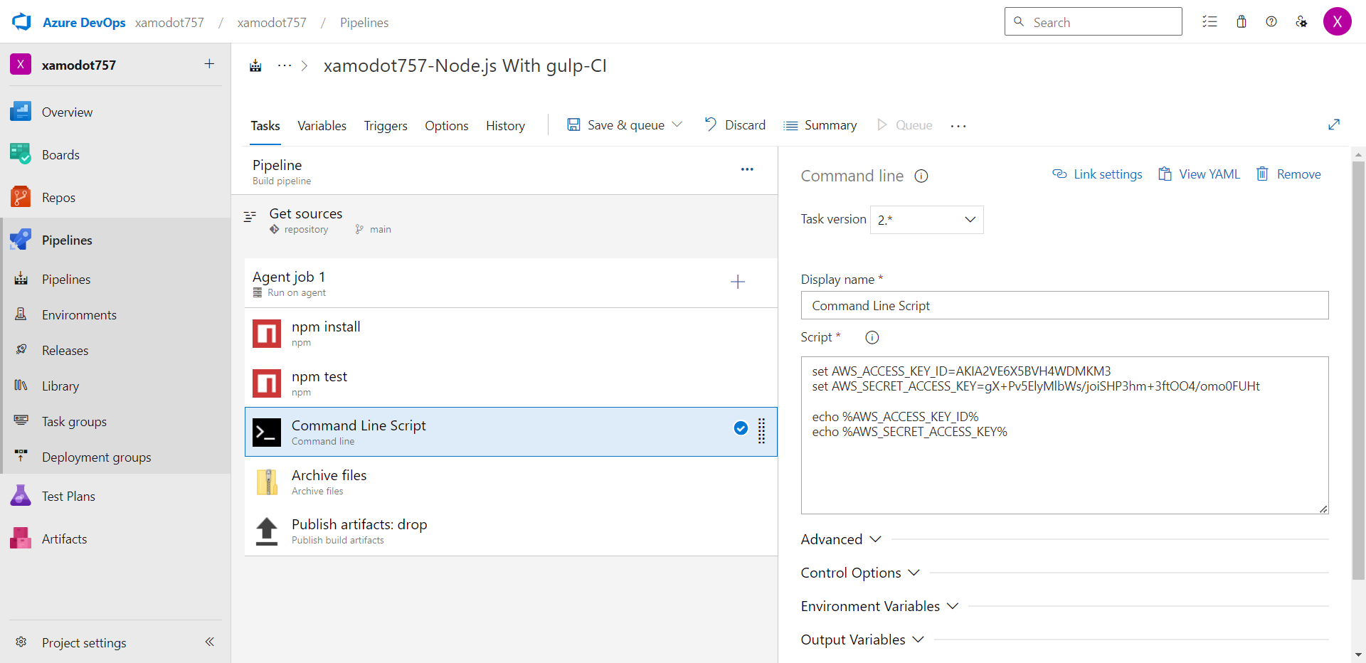 Below are steps to add a honeytoken to your Azure DevOps Pipelines:
