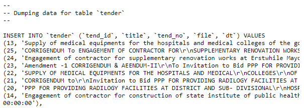 An SQL dump from the Government of West Bengal’s Medical Services Corporation Application contained the personal information of anyone who filled out a contact us form.