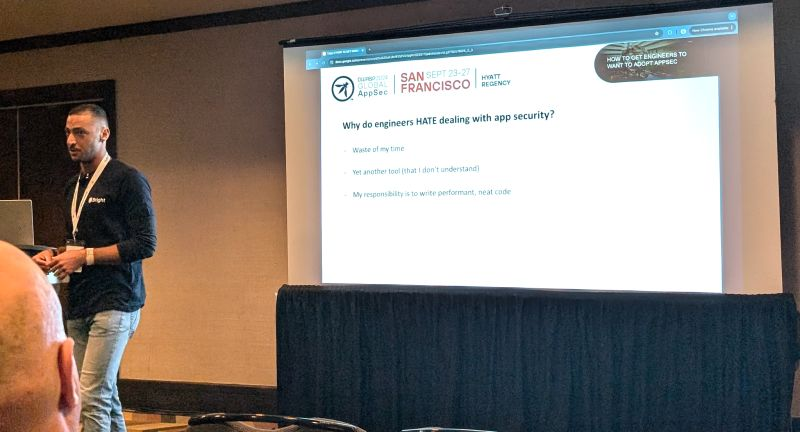 Matan Rabi, R&D Team Leader at Bright, at the very beginning of his talk "How to get developers to want to adopt AppSec," asked the room, "Why do developers hate application security?" His answer is, for the most part, that they do not believe they get measured on doing things securely, just getting many things done. Security is too often seen as just extra work.