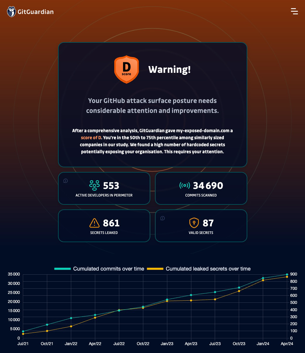 Leverage GitGuardian's unique 7-year knowledge base of publicly exposed secrets on GitHub and get a comprehensive, confidential audit report instantly.