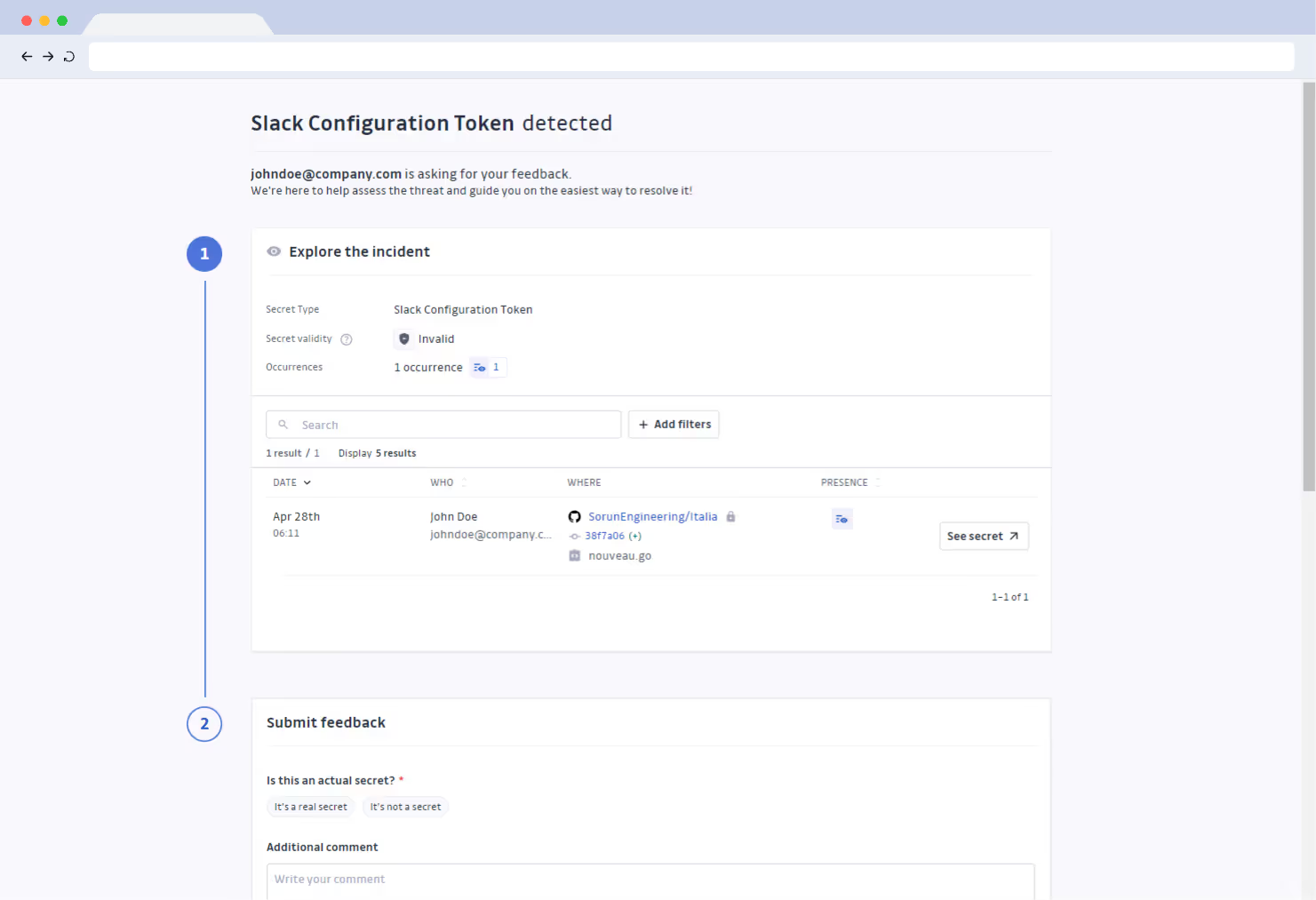 - Determine the scope of the compromise: How critical is it? For example, can the secret be used to access personally identifiable information (PII) or financial data? Is the affected environment non-prod or production?