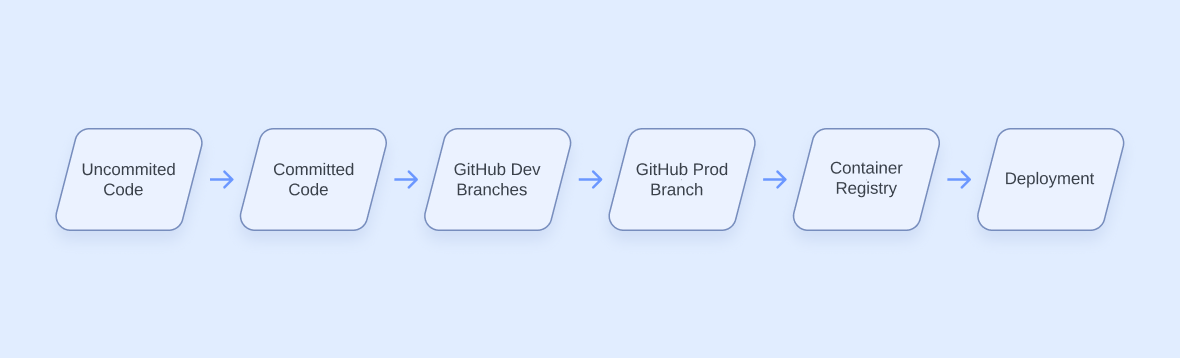 If the code passes review in the Pull Request from the dev branch, it is ready to be published as a container. We will build a container image with our code and publish the image to our container registry.