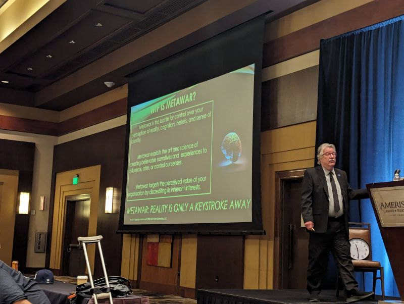 Winn Schwartau, legendary security researcher and expert witness who coined the term "Electronic Pearl Harbor" back in 1991, gave the final keynote of ShowMeCon 2024, "The Art And Science of Metawar—Reality Is Only A Keystroke Away." He explored the evolving landscape of cyber warfare and cognitive security while technological advancements are reshaping our perception of reality and its implications for us as a society. This talk covered a lot of ground, and there is no way I can capture all the nuance, but here are my main takeaways.