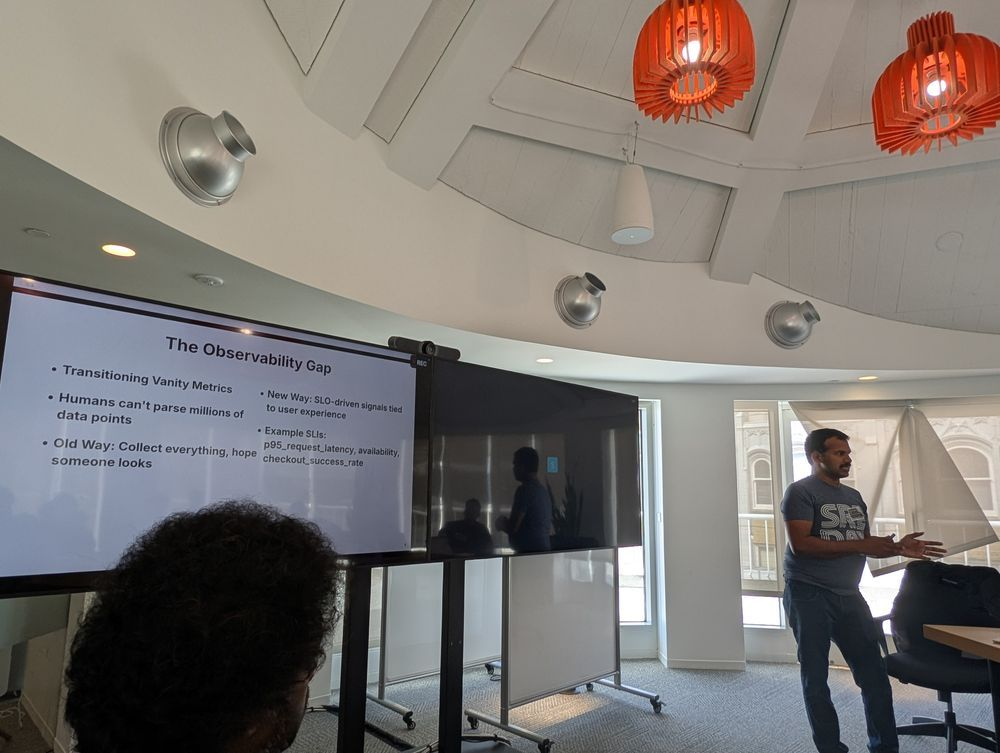 Throughout the day, around one hundred Site Reliability Engineers, DevOps professionals, and other IT folks gathered for 2 tracks of talks. Throughout the 20 sessions, we heard a recurring sentiment that tools matter, telemetry matters, but human judgment is the boundary between graceful resilience and quiet catastrophe. The best automation behaves like that cable car system, ever present and predictable, but designed to work with people rather than erase them. That is the posture security and Site Reliability must take as AI systems, non-human identities, and agentic automation push deeper into production. Here are just a few highlights from the latest event, organized by the SREday team around the world.