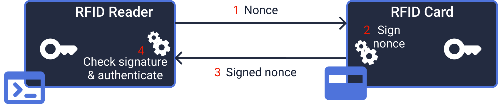 This key establishes a secure, encrypted channel for authentication and data exchange between the card and reader. This approach is highly efficient for devices with limited processing power and memory, where the overhead of asymmetric cryptography would be prohibitive, as is the case with low-power RFID applications.