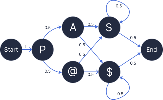 Without entering too much into the technical details, we used the sample of LLM-generated passwords to build multiple different Markov chains: