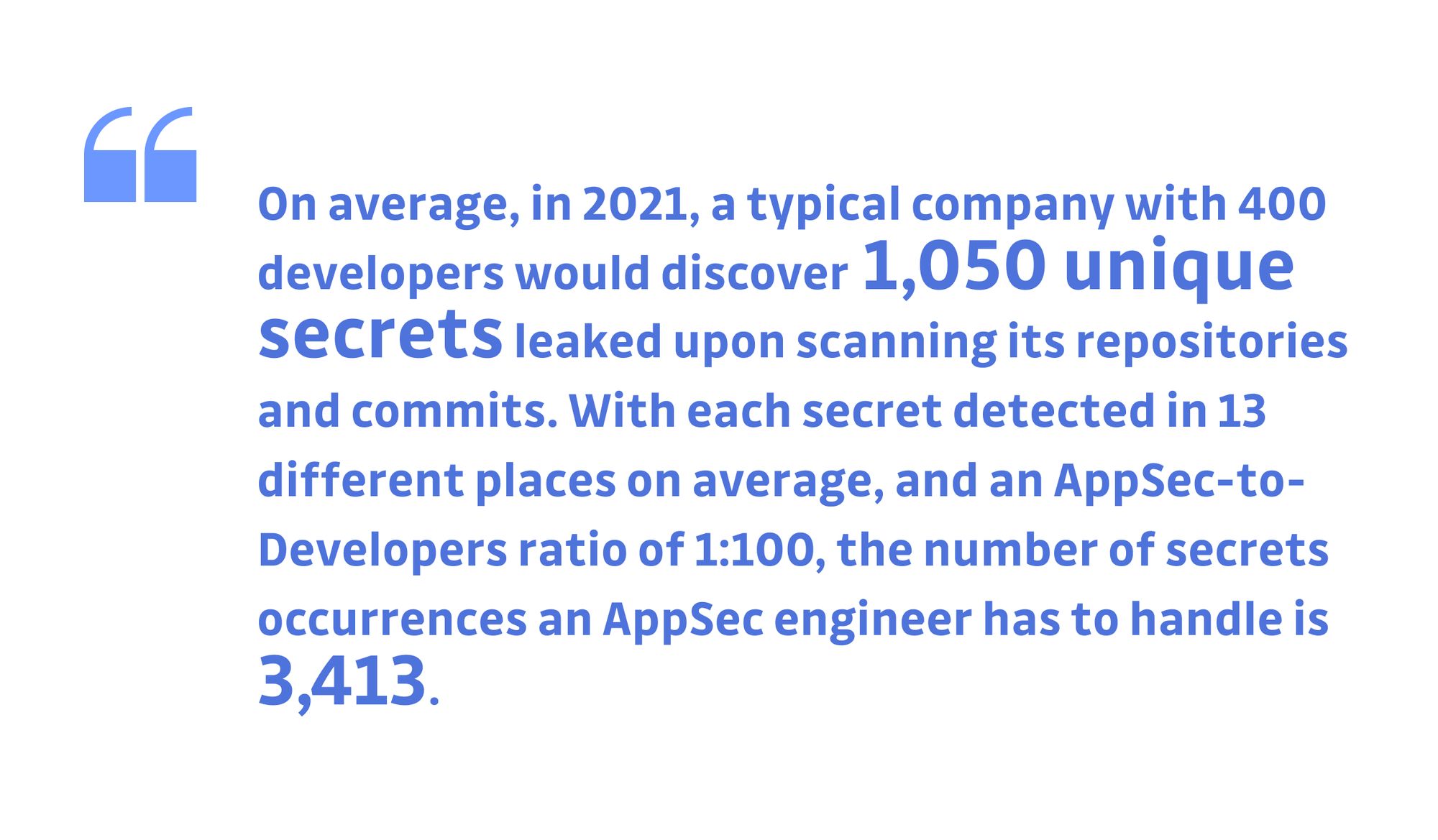 The historical volume of secrets-in-code, coupled with their constant growth, jeopardizes the remediation capacity of security teams, primarily application security engineers. This, in turn, puts the whole transition process to DevSecOps at risk.