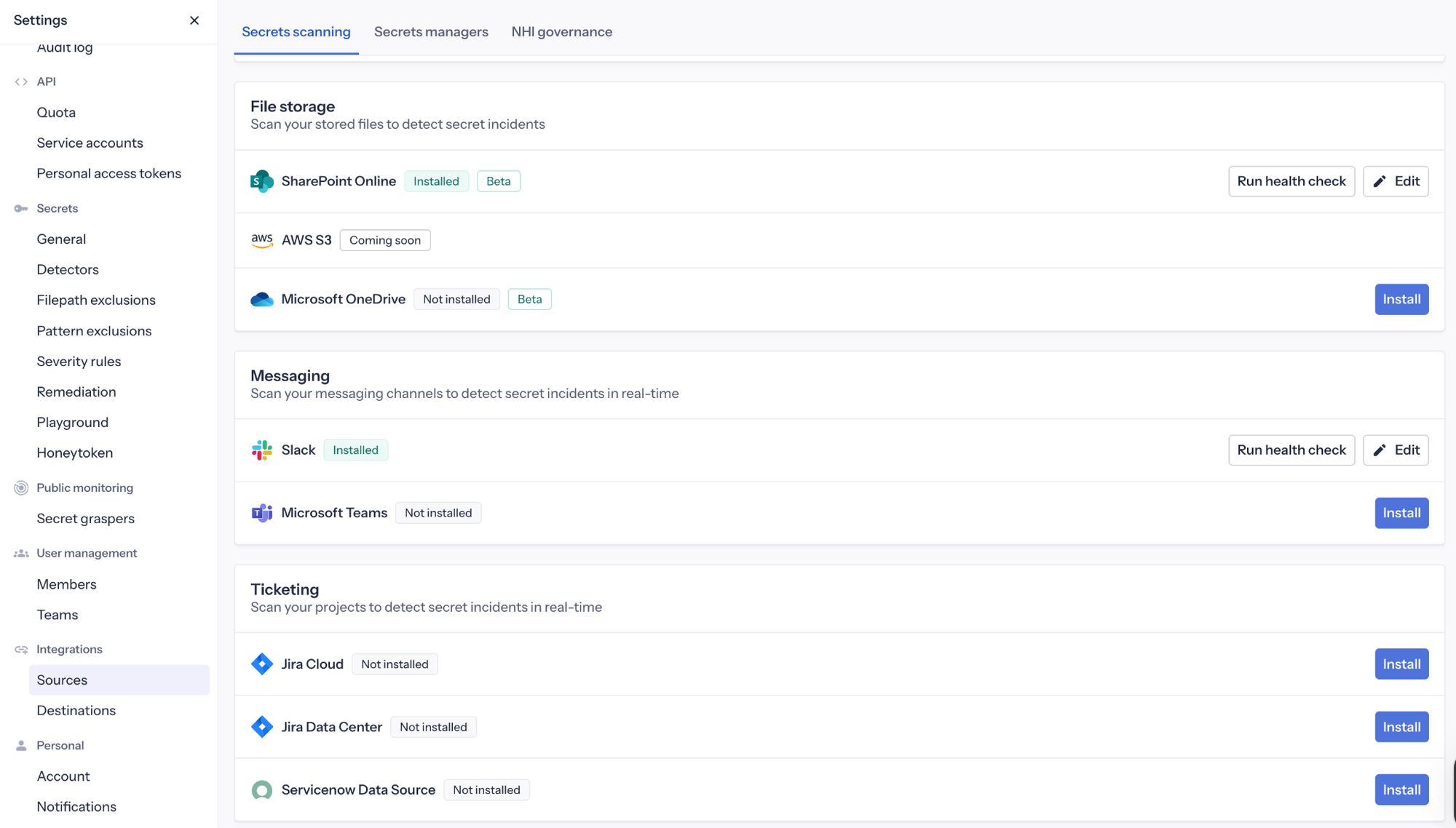 First, the platform can alert you instantly when any real-time incidents of credentials showing up in plaintext across code, messaging systems, ticketing platforms, documentation, and any other source. We are not limited to detecting NHIs, which the platform famously helps teams govern. Any password or credential that is contextually granting access will be detected in seconds, allowing you to respond before an attacker is ever aware it exists.