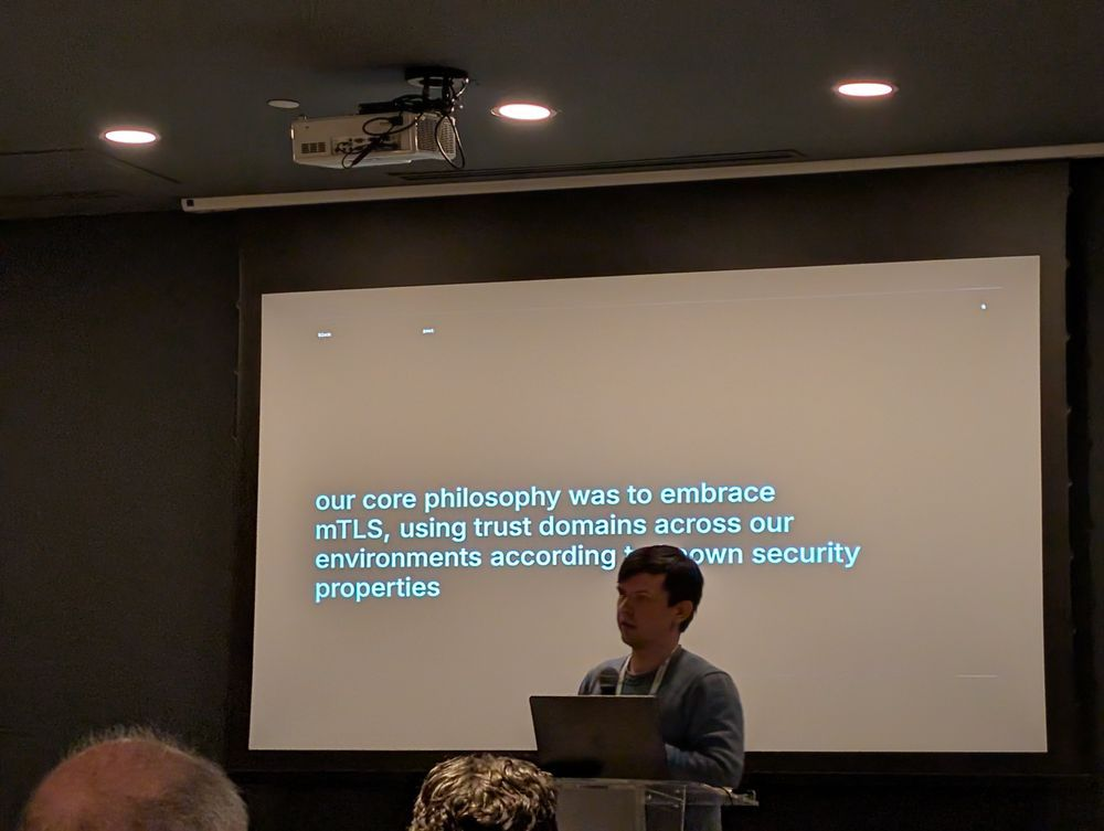 Brett Caley, Senior Software Security Engineer at Block, echoed a similar story arc as Uber's in his talk "WIMSE, OAUTH and SPIFFE: A Standards-Based Blueprint for Securing Workloads at Scale." The core question they needed to answer was how to prove a workload "Is who they say they are." Their team went from plaintext keys in Git and bespoke OIDC hacks to “x509 everywhere,” SPIRE-driven attestations. They have rolled out systems that can issue credentials where the workload is, and at the speed developers demand. He explained that they deployed SPIRE “where it should exist.”